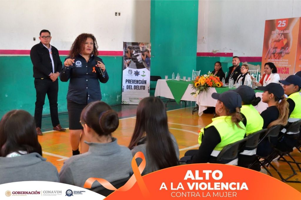 En el marco de la conmemoración del “Día Internacional de la Eliminación de la Violencia contra la Mujer”, la Fiscal Especializada en Feminicidios, Sandra Verónica Sánchez Urrutia, ofreció una conferencia a estudiantes de diversas preparatorias de Villa de Reyes, con el fin de erradicar y combatir esta problemática.