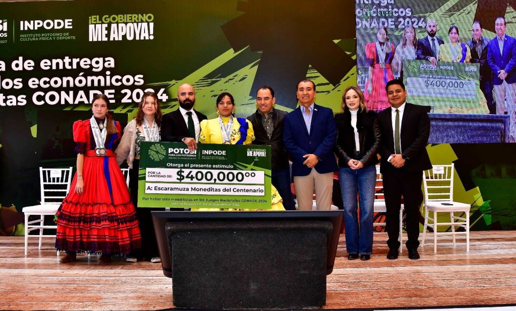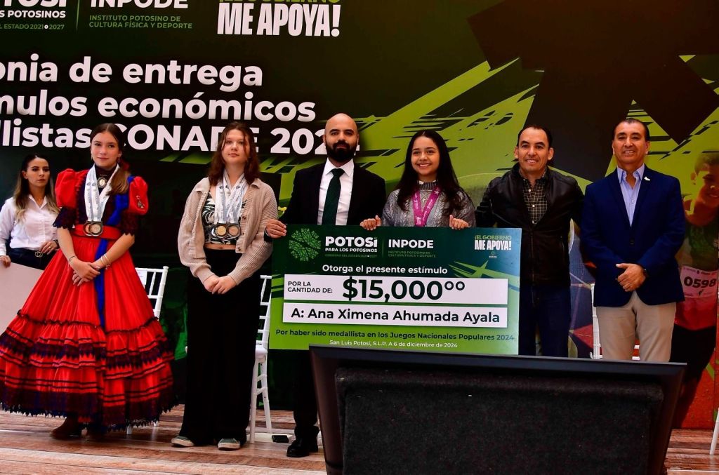 Resultado del impulso histórico a las actividades deportivas en San Luis Potosí, el Instituto Potosino de Cultura Física y Deporte (Inpode) entregó este viernes, los estímulos económicos a las y los atletas ganadores de medallas en Nacionales y Paranacionales de la Comisión Nacional de Cultura Física y Deporte (Conade) 2024, así como en Juegos Nacionales Populares, mediante un monto de más de tres millones de pesos, repartidos entre cada ganador o ganadora.