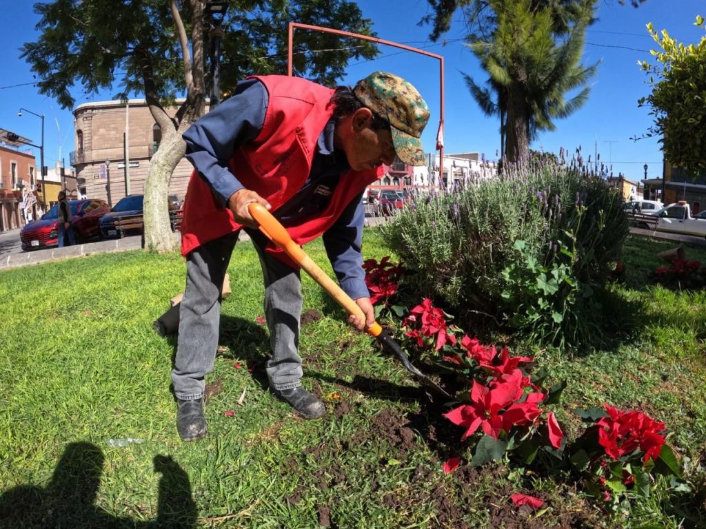Al llegar la temporada decembrina a San Luis Capital, la Dirección de Servicios Municipales, a través de Parques y Jardines, llevan a cabo trabajos de rehabilitación en todas las áreas verdes, así como también en algunos jardines se plantan flores de nochebuena para embellecer estos espacios públicos con un ambiente navideño.