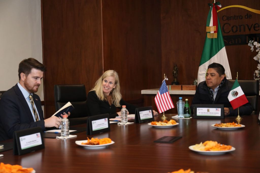 Para fortalecer la agenda bilateral de hermandad, colaboración económica e intercambio cultural, educativo y social, el Gobernador de San Luis Potosí, Ricardo Gallardo Cardona, se reunió con la Cónsul General de Estados Unidos, Melissa Bishop, con lo que continuarán promoviendo mejores condiciones de apoyo para las familias potosinas.