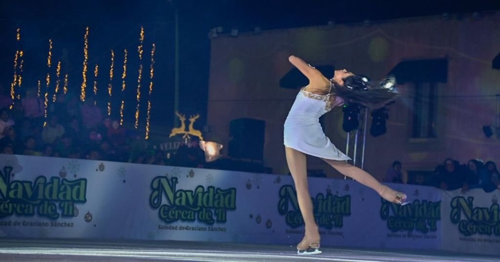 Con un show espectacular a cargo de la patinadora artística y potosina, Kina Catrina, fue inaugurada la grandiosa Pista de Hielo en la Plaza principal de Soledad de Graciano Sánchez, ante cientos de familias que se dieron cita para divertirse y vivir la navidad en el corazón del municipio, como parte de las actividades de temporada que el Alcalde Juan Manuel Navarro Muñiz, ha impulsado para el disfrute de la población.