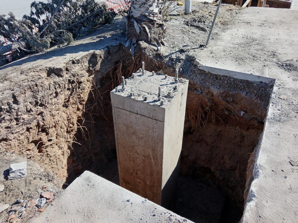 – El pasado viernes, se llevaron a cabo labores de colado en los dos últimos dados necesarios para la instalación de la estructura metálica, y se concluyó la cimentación en el terreno y el camellón.