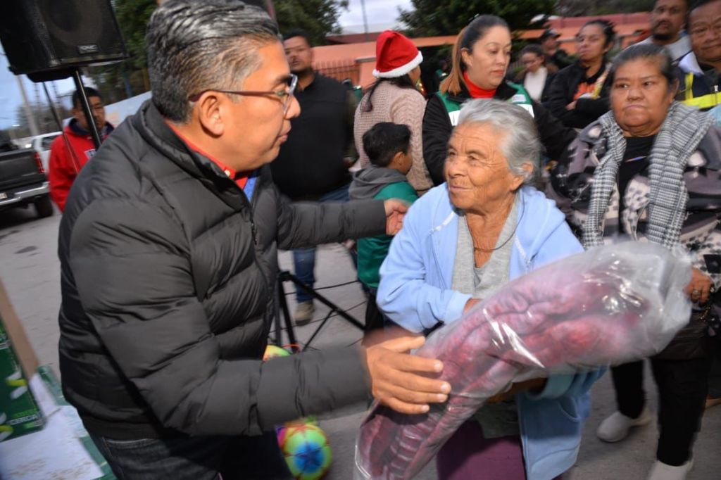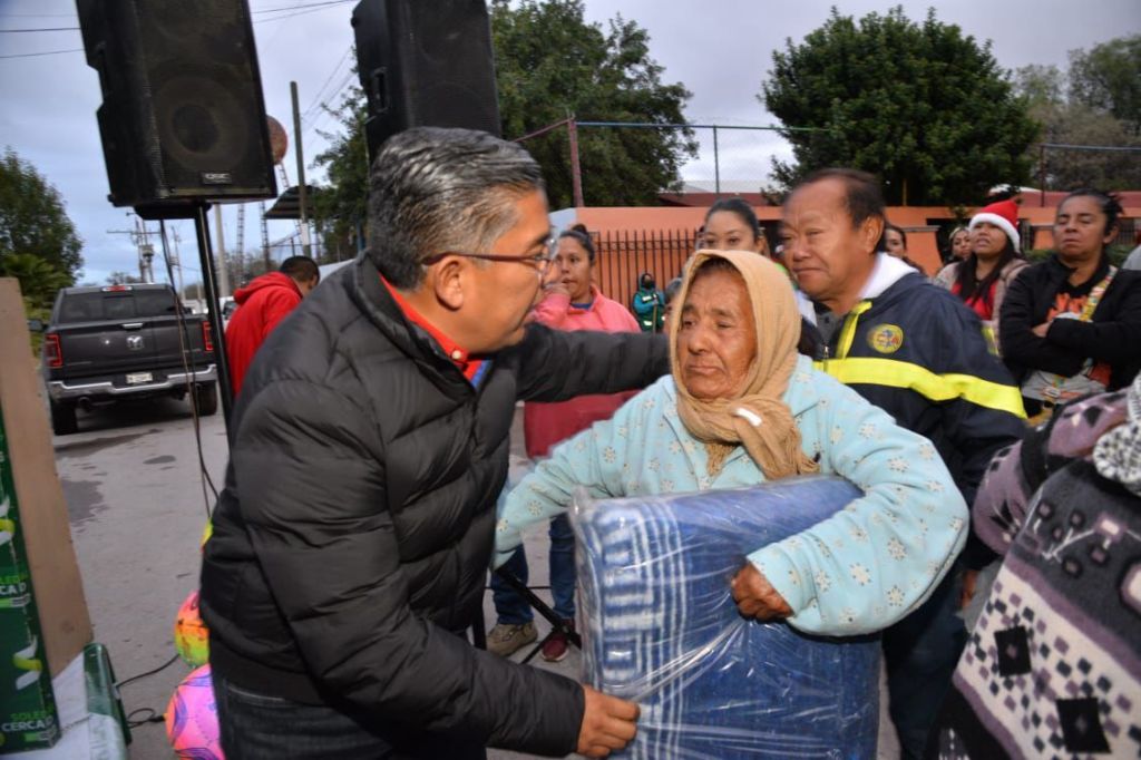 * El alcalde encabezó la entrega de cobertores en diversas colonias del municipio para proteger del frío a las familias durante esta temporada en el marco de las posadas navideñas.