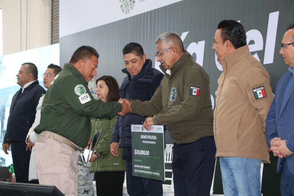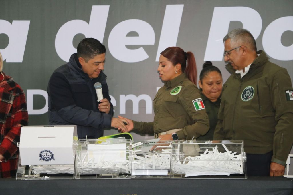 Puntualizó que, el 2024 representó una importante inversión en equipamiento, patrullas, tecnología y la histórica entrega de un seguro de vida y una casa para las familias de mujeres y hombres que realizan un sacrificio en la lucha por la seguridad en Estado, luego del abandono en el que estuvo ante la negligencia de la herencia maldita.