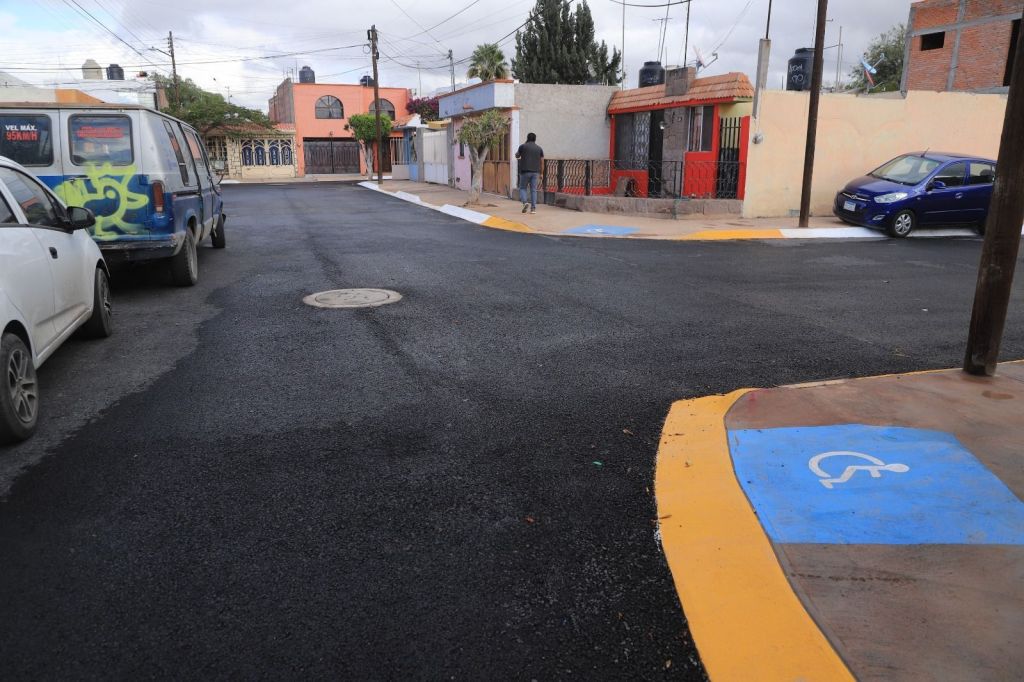 En la calle Francisco Sarabia, en el tramo de Damián Carmona a la calle 16 de Septiembre, se repavimentaron 2 mil 100 metros cuadrados con carpeta asfáltica de 5 centímetros de espesor, además de instalar 310 metros lineales de nueva red de drenaje e igual número de tubería de agua potable, así como señalética y rampas para personas con discapacidad.