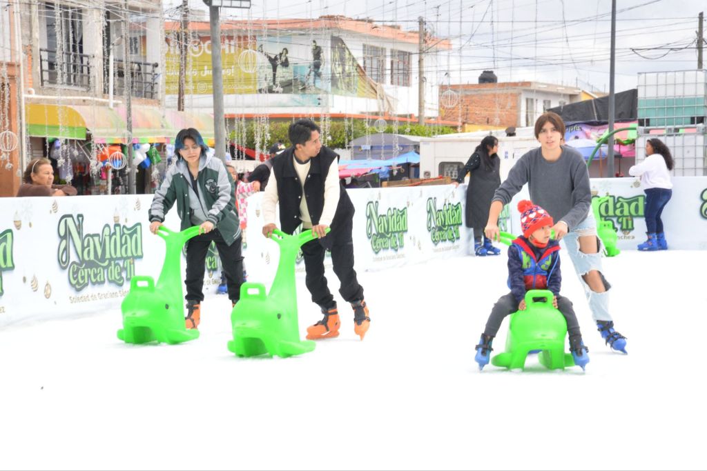 La magia de la temporada navideña se vive con intensidad en Soledad de Graciano Sánchez, por parte de las familias que acuden diariamente a pasar momentos inolvidables en la Pista de Hielo, una de las principales atracciones ofrecidas por el Ayuntamiento en esta época, y que con el respaldo del Presidente municipal, Juan Manuel Navarro Muñiz, estará disponible hasta el próximo 8 de enero, para el disfrute de habitantes y visitantes.