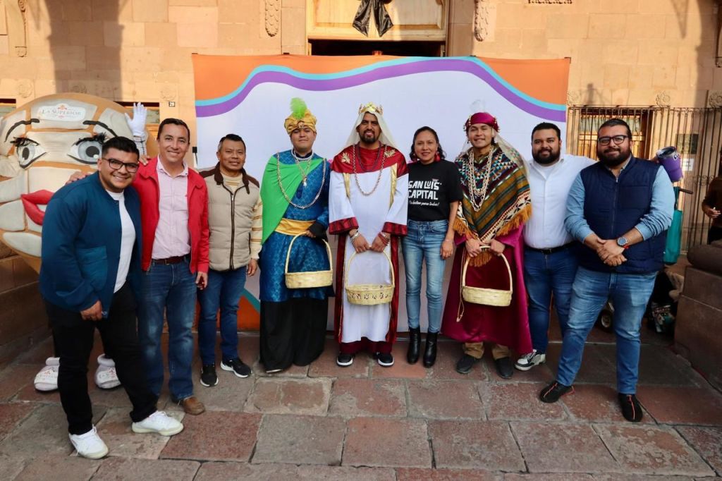 Como parte de las amenidades de esta actividad, se hicieron presentes los Reyes Magos Melchor, Gaspar y Baltazar, quienes convivieron con los cientos de familias que se dieron cita en la monumental Rosca de Reyes que organizó el Gobierno Municipal de San Luis Capital.