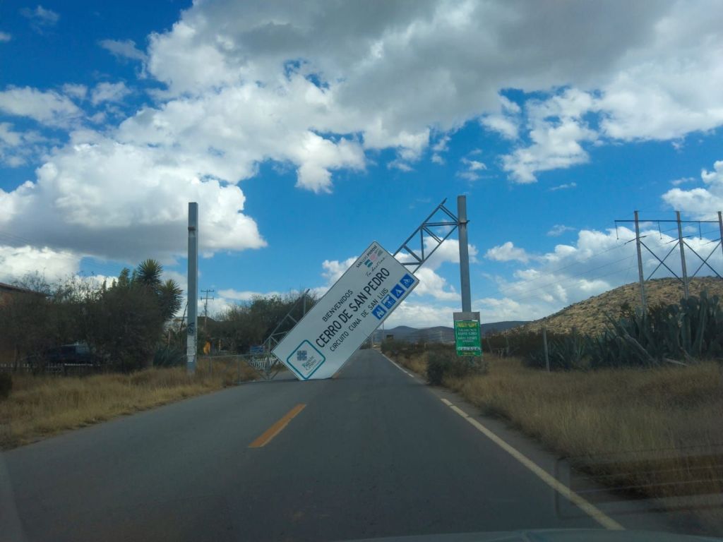 • Protección Civil Estatal atendió la caída de un espectacular, tres árboles y un letrero en Cerro de San Pedro