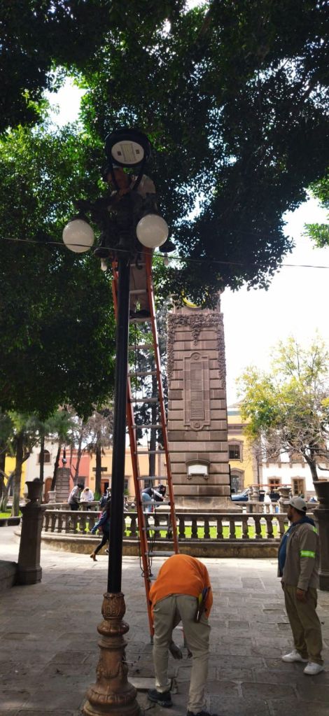 Asimismo, se tendieron nuevas líneas de alimentación eléctrica y se repusieron 6 globos de policarbonato en los postes tipo dragón, tanto en el andador central como en los cruces de pasillo en la calle Pascual M. Hernández, de Morelos a 5 de Mayo, quedando todo funcionando.