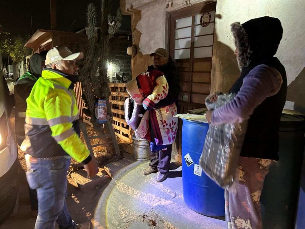 – Con apoyo de tres unidades y una ambulancia, elementos de Protección civil entregaron cobijas y colchonetas, y ofrecieron traslado al refugio del DIF Municipal.