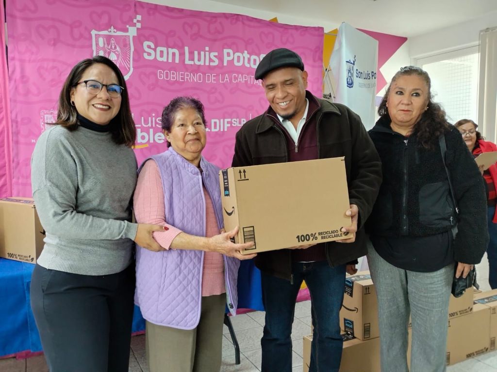 SLP.- En un esfuerzo conjunto por mejorar las condiciones de vida de los grupos mávulnerables, la Asociación «De la Mano por San Luis», entregó 30 despensas a igual número de personas adultas mayores que forman parte de los clubes del Sistema Municipal DIF.