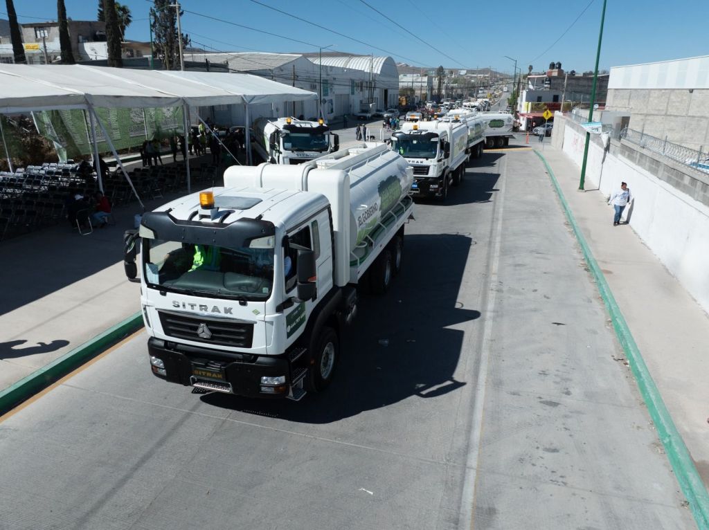 Con una inversión de 116 millones de pesos de recurso estatal el gobierno adquirió 40 pipas para la distribución de agua potable en las colonias de la zona metropolitana, las cuales beneficiarán aproximadamente a 300 mil familias potosinas, los camiones cisternas tienen una capacidad de 20 mil litros,cuentan con tecnología de punta en sistemas de seguridad y rastreo satelital para localizar fácilmente los puntos de entreg que en concordancia con un gobierno verde señalo el director general de la Comisión Estatal del Agua (CEA).