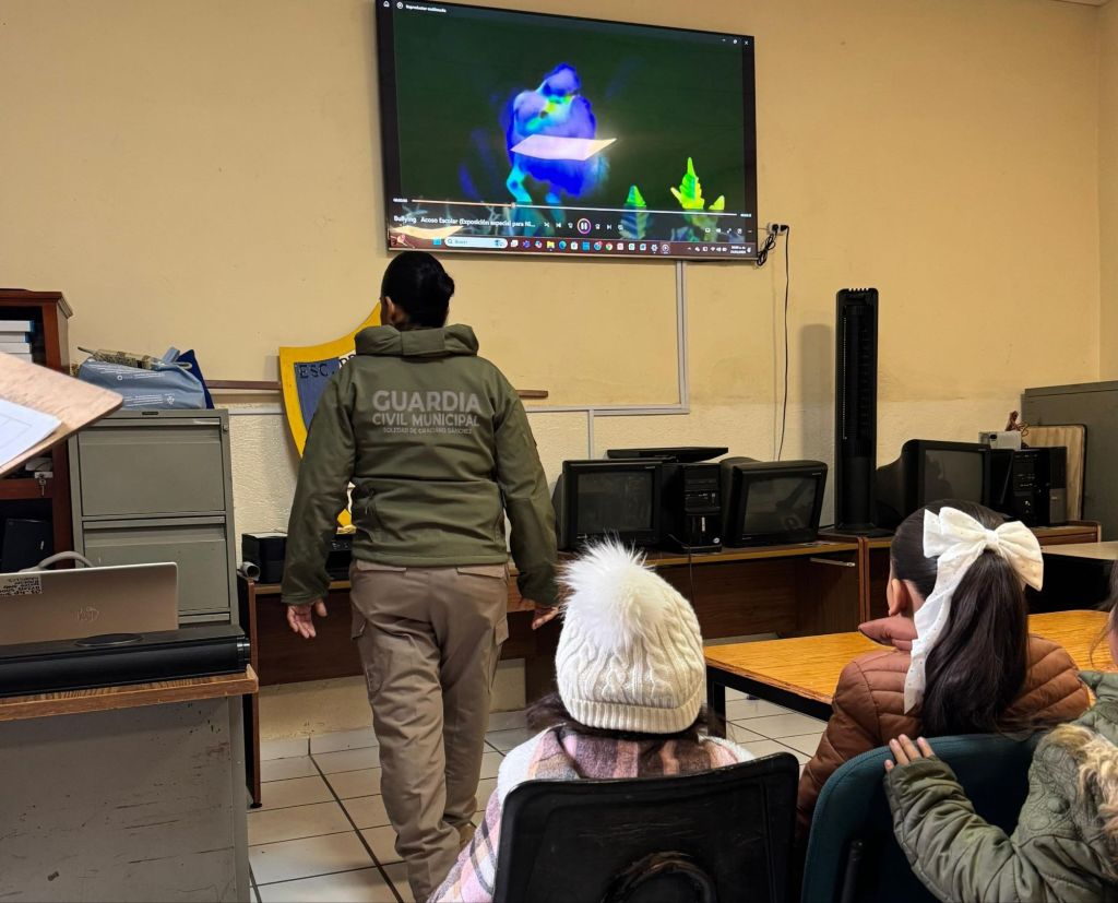 Con el objetivo de fortalecer la relación con la ciudadanía, fomentar valores en las y los jóvenes del municipio, además de prevenir el delito de raíz, la Guardia Civil Municipal de Soledad de Graciano Sánchez, a través de la Subdirección de Proximidad Social, brindó pláticas a estudiantes de nivel básico en la Primaria «Pedro Montoya» de Cabecera Municipal, cuyo tema principal fue la prevención del acoso escolar.