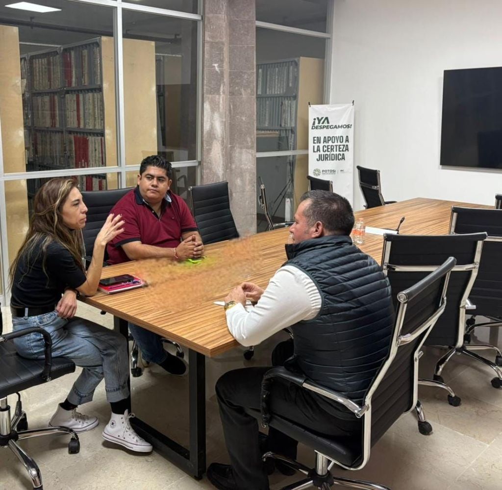 Por instrucción del Gobernador del Estado, Ricardo Gallardo Cardona, durante una reunión de trabajo, Yahaira Martínez Martínez, titular del IRC y Christian Sánchez Sánchez, del Inrevis, analizaron los avances y planificación de estrategias clave para la implementación del programa en los municipios de: Tamazunchale, Soledad de Graciano Sánchez, San Luis Potosí, Matehuala, Ciudad Fernández y Rioverde, para agilizar los procesos de regularización y registro de propiedades, garantizando seguridad jurídica a las y los beneficiarios del programa.