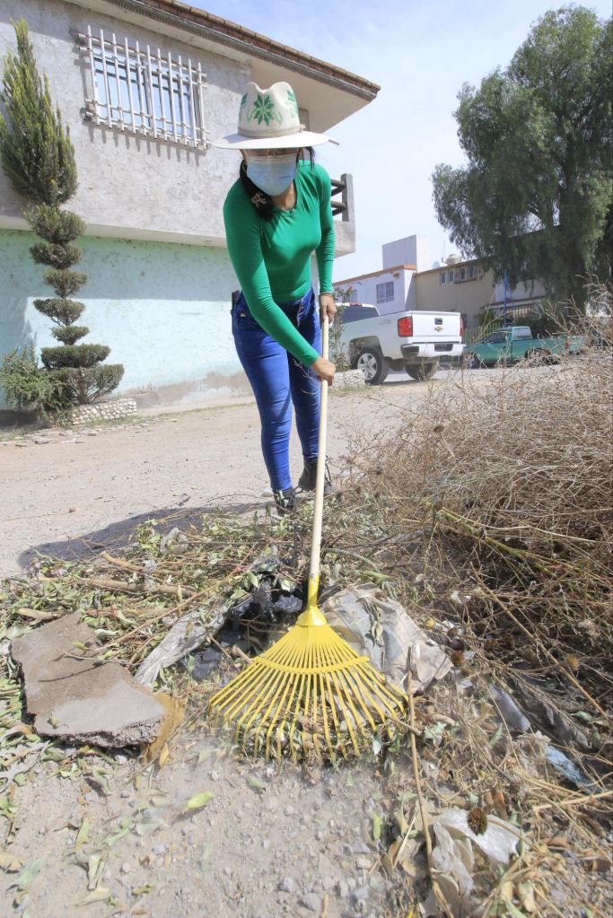 Acompañada de autoridades municipales y personal de distintas áreas municipales, realizaron trabajos de limpieza que abarcan desde recolección de basura, poda de árboles y ramas, así como escombros acumulados en la zona.