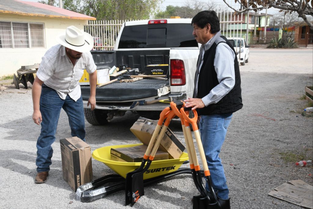 Derivado de las gestiones encabezadas por el Alcalde Juan Manuel Navarro Muñiz, el plantel educativo recibió cinco azadones, cinco palas, cinco rastrillos, cinco machetes, tres carretillas, dos mochilas aspersoras y tres talaches; estas herramientas permitirán que más estudiantes de la carrera de Técnico Agropecuario cuenten con el equipo necesario para realizar sus prácticas de manera eficiente.