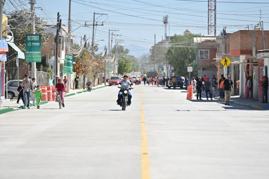 Con una inversión pública de 22.5 millones de pesos, la reconstrucción de la avenida Adolfo López Mateos incluyó concreto hidráulico en el tramo de la tercera privada Adolfo López Mateos a la calle Francisco I. Madero, colector pluvial, líneas de agua potable, cruces peatonales, banquetas y guarniciones, transformando un entorno de abandono de la herencia maldita a un lugar de tránsito seguro y de modernidad vial para las y los habitantes.