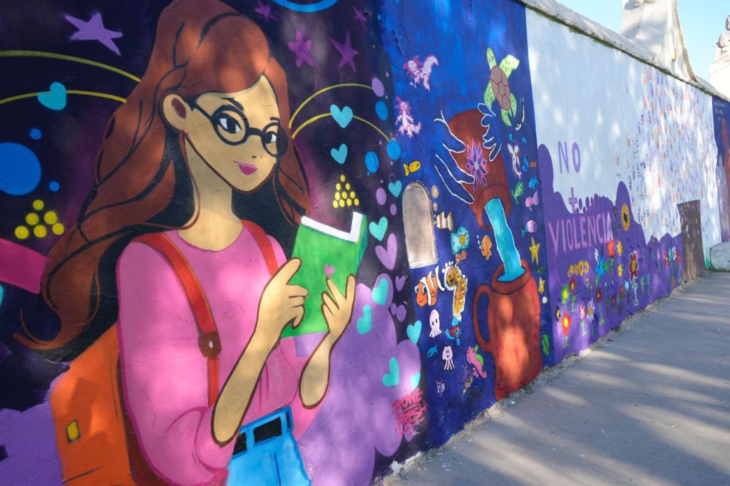 – A través de un mural realizado en el panteón municipal se representa la lucha por una vida libre de violencia.