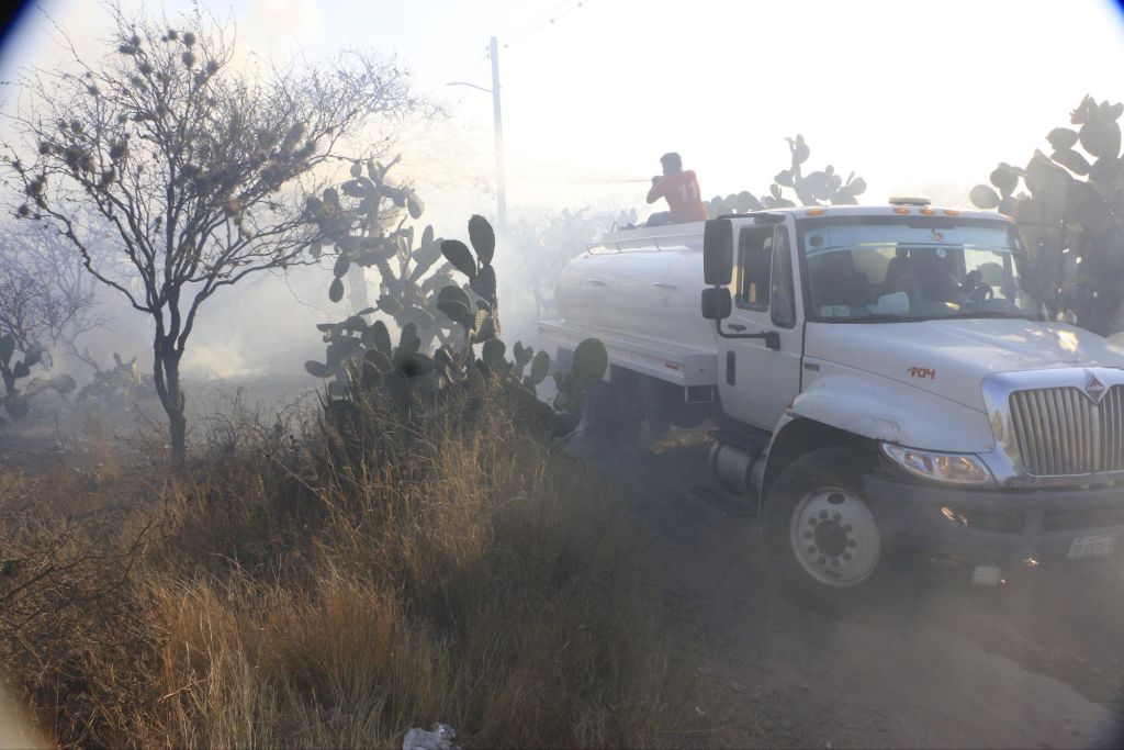 - La presidenta Teresa Rivera Acevedo mostró su solidaridad y apoyó en las labores de emergencia con insumos, en el incendio registrado frente Urbi en carretera Rioverde, que se extendió a Comunidades de Zaragoza.
