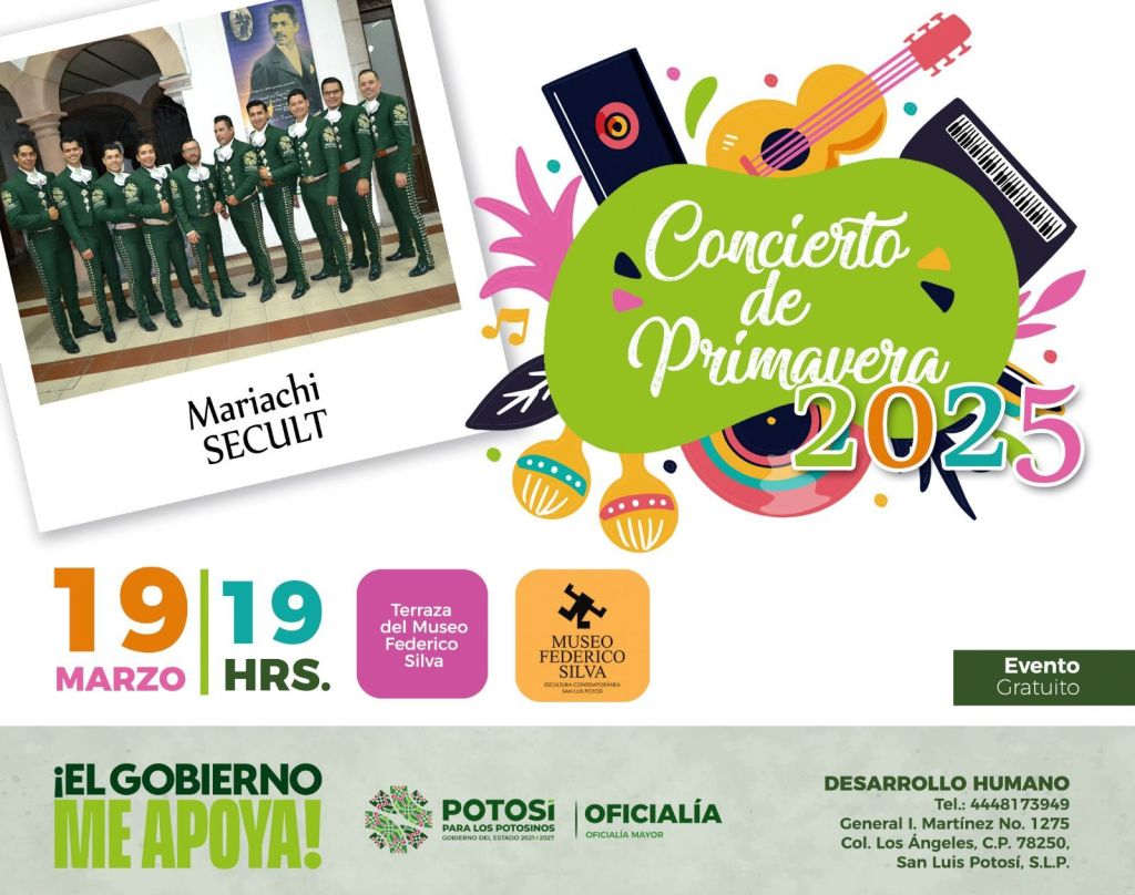 La Oficialía Mayor del Ejecutivo, llevará a cabo el “Concierto de Primavera 2025”, dirigido a personas servidoras públicas estatales, con la presentación del Mariachi del Gobierno del Estado, el próximo 19 de marzo, en la terraza del museo Federico Silva.