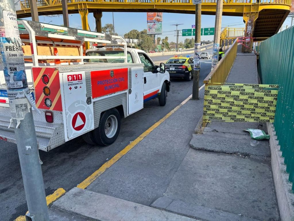 Detalló que personal de la Dirección de Protección Civil Municipal acudió a verificar los daños estructurales, observando un desprendimiento de una estructura de metal de la base de concreto, motivo por el que se determinó clausurar el acceso peatonal para evitar riesgos.