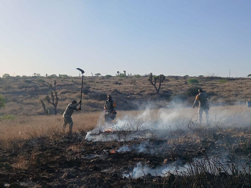 arbustos, ocasionando diversos daños en la flora, por lo que el personal militar trabajó de manera coordinada con Protección Civil, la Comisión Nacional Forestal, la Secretaría del Medio ambiente y autoridades Estatales, con el objeto de evitar