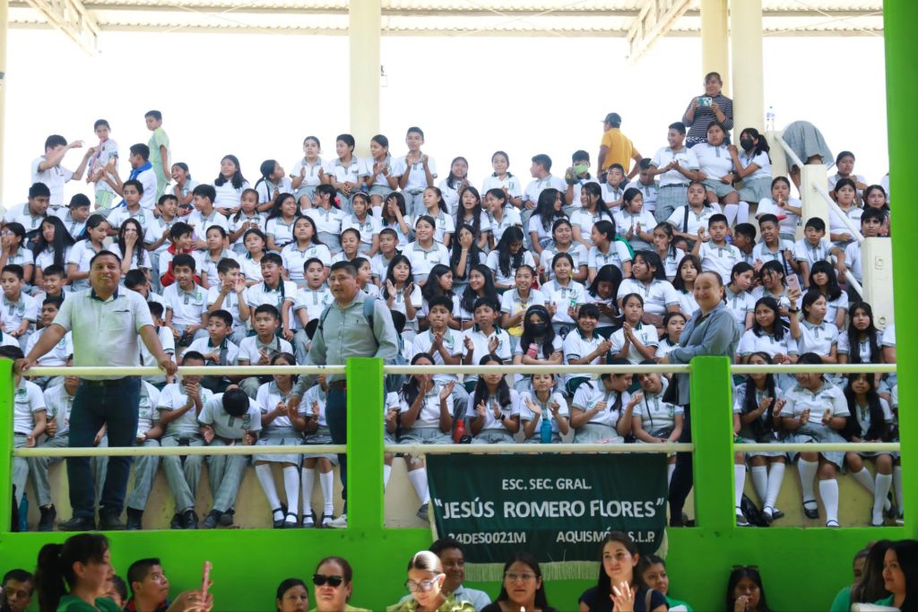 Agregó que el parque, solicitado hace unos meses, por María Guadalupe Fernández Torres, alumna de la escuela secundaria general, Jesús Romero Flores, será un parque de primera, para la gente de primer nivel de Aquismón, e insistió en que el objetivo es cambiar la vida de las familias, para que tengan un crecimiento y vuelvan a confiar en que sí se puede cambiar y transformar San Luis Potosí, con nuevos caminos, carreteras, escuelas, con internet gratuito, programas sociales de apoyo a personas adultas mayores y madres solteras, y el de seguridad alimentaria, entre muchos más.