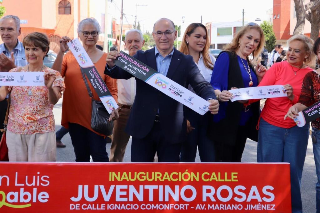 – El Alcalde Enrique Galindo entrega la calle Juventino Rosas, que se suma a 45 mil metros cuadrados rehabilitados integralmente en esta zona de SLP y los más de un millón 200 mil metros cuadrados en menos de cuatro años.