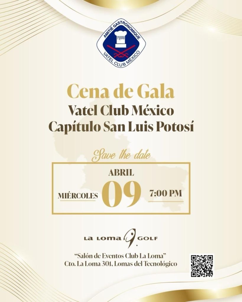La cena contará con un menú de cuatro tiempos diseñado por chefs del Vatel Club México, utilizando ingredientes locales y fusionando técnicas tradicionales con innovaciones culinarias. Entre los chefs participantes destacan Carlos García, presidente de Vatel Club San Luis Potosí; Enrique Cruz y Ángel Martínez, vicepresidentes del club; así como Valeria Hernández, Érika Alcalá, Jaime Abaroa y Basilio Nieto, miembros activos de la organización. Además, asistirán personalidades como el chef Guy Santoro, presidente de la Academia Culinaria de Francia para América Latina y el Caribe, y el chef Sergio Camacho, presidente del Vatel Club México.