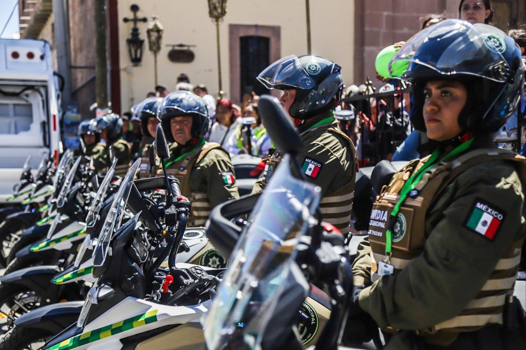 Los vehículos entregados son: 10 camionetas Chevrolet, equipadas como patrullas, dos camionetas para labores de protección civil, 10 motos patrullas equipadas, y tres patrullas más tipo SUV y Police Interceptor, uniformes completos con botas, y equipo táctico como esposas metálicas, bastones expandibles, escudos antimotines, chalecos antibalas, entre otros, lo que fortalece a la corporación municipal y permite fortalecer la seguridad en la demarcación.
