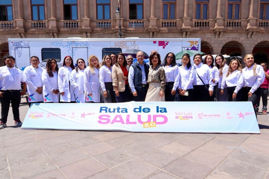 LP.- La Presidenta del Sistema Municipal DIF, Estela Arriaga Márquez y el Alcalde Enrique Galindo Ceballos, inauguraron la “Ruta de la Salud 2.0” que ofrecerá más y mejores servicios a las y los potosinos. La titular del DIF Capitalino, Estela Arriaga, afirmó que dicho programa es un complemento de la labor que realiza el Gobierno Federal a través del IMSS e ISSSTE para llegar a más población que requiere bienestar en sus familias: “Nos propusimos acercar servicios médicos y preventivos de calidad para quienes enfrentan mayores barreras para acceder a la salud”, puntualizó Arriaga Márquez.
