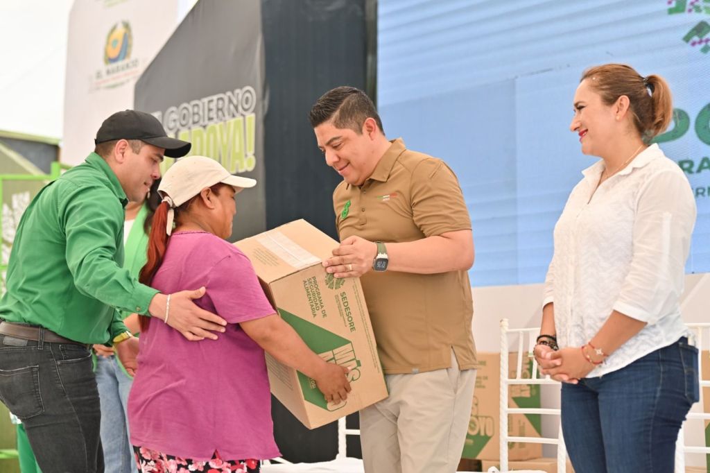 Por la mañana, en la localidad de El Limonal, el Gobernador inició los trabajos de reconstrucción del camino La Ceiba-El Limonal con inversión de 28.85 millones de pesos y entregó apoyos del programa seguridad alimentaria a cientos de familias que lo recibieron con júbilo.