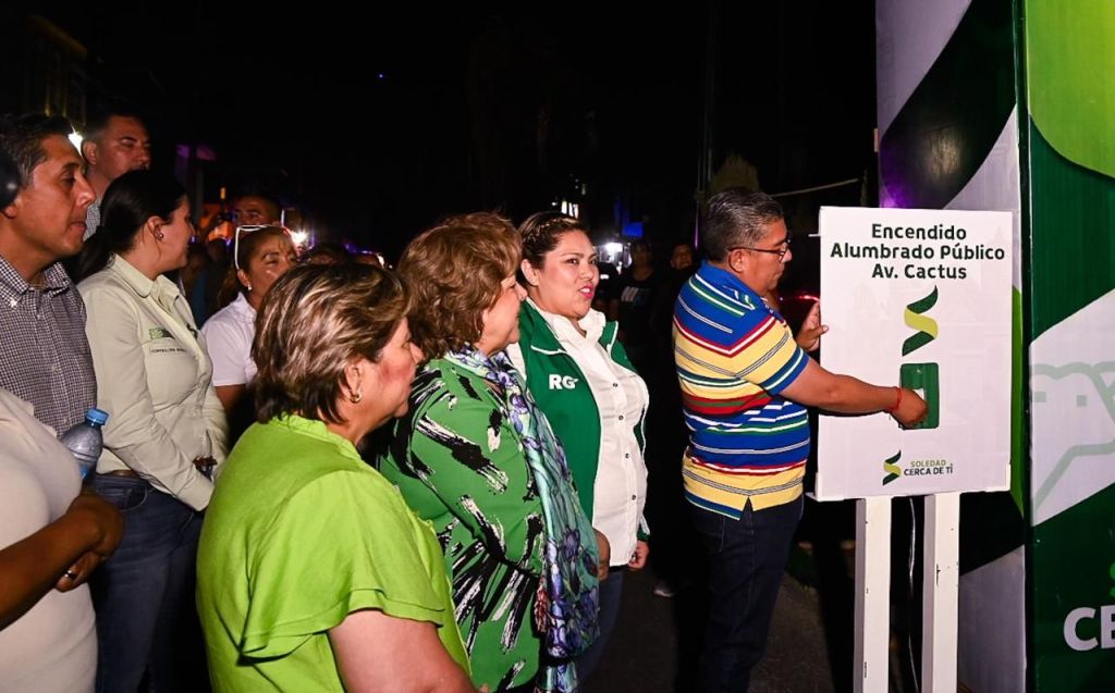 En la colonia Los Cactus, y como un proyecto para la mejora de la seguridad pública y el bienestar de todas las familias, el Alcalde de Soledad de Graciano Sánchez, Juan Manuel Navarro Muñiz encendió el sistema de alumbrado tipo led, derivado de un proyecto integral de transformación urbana para más de 20 mil mil familias de la zona oriente, el cual ahora brinda mayor visibilidad para transeúntes y automovilistas.