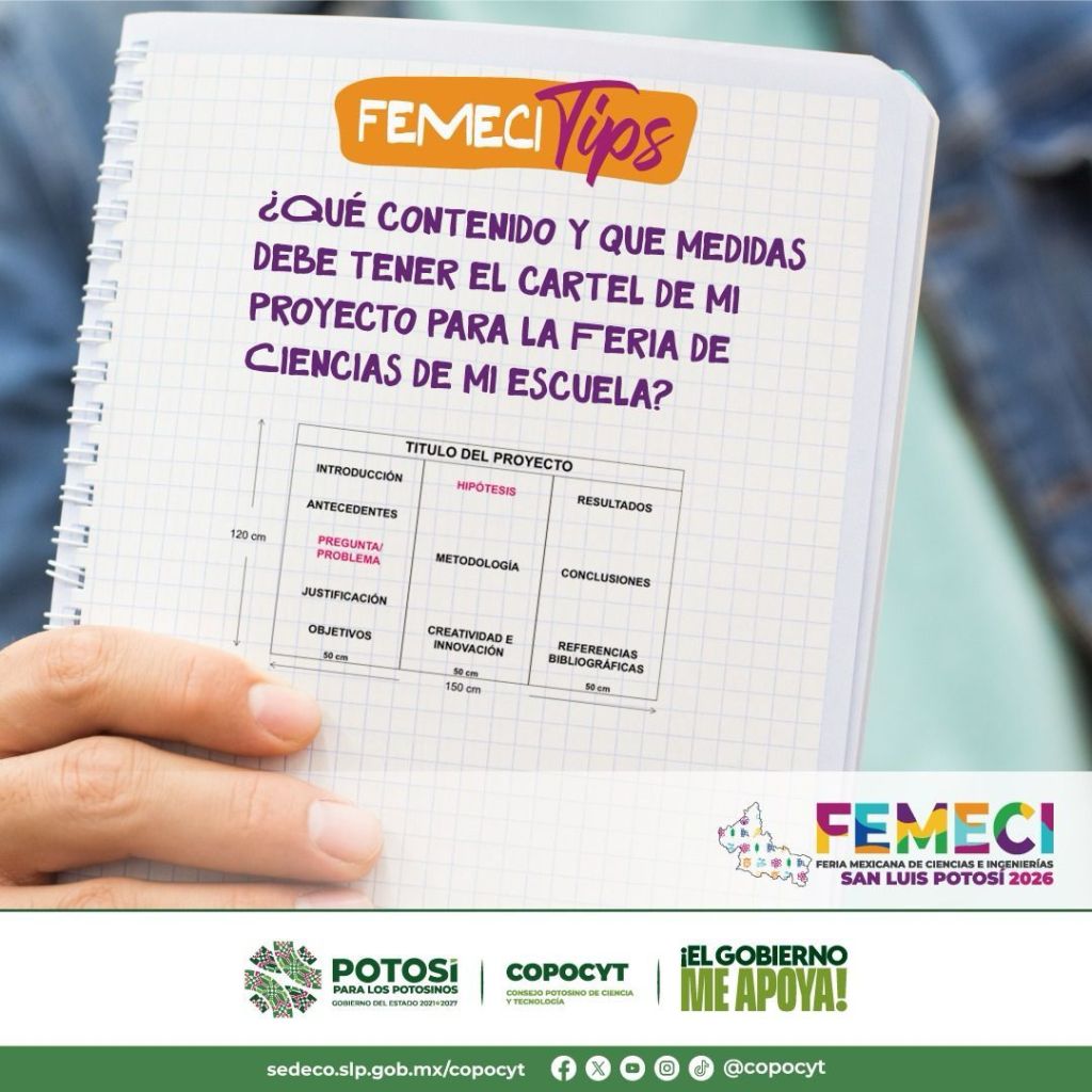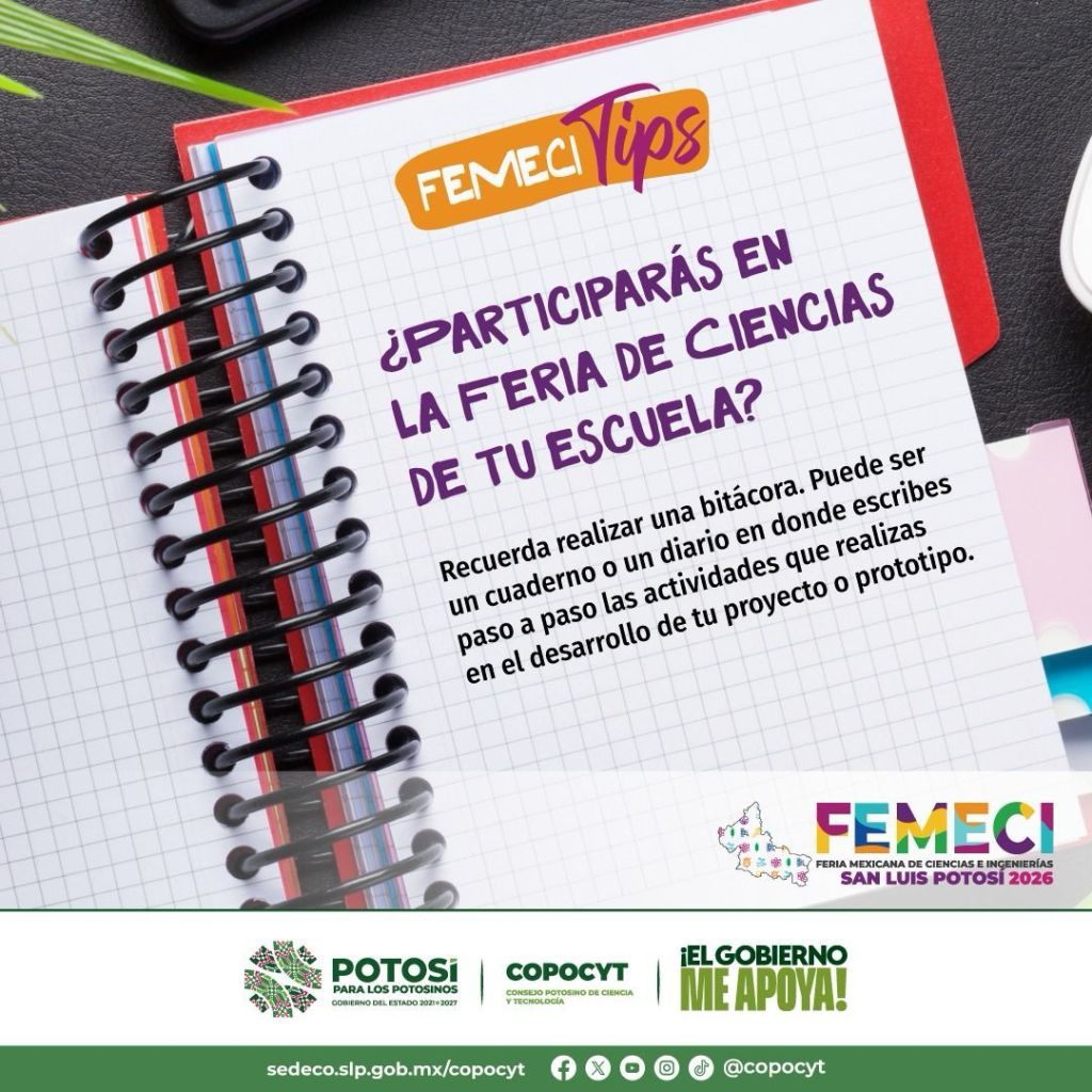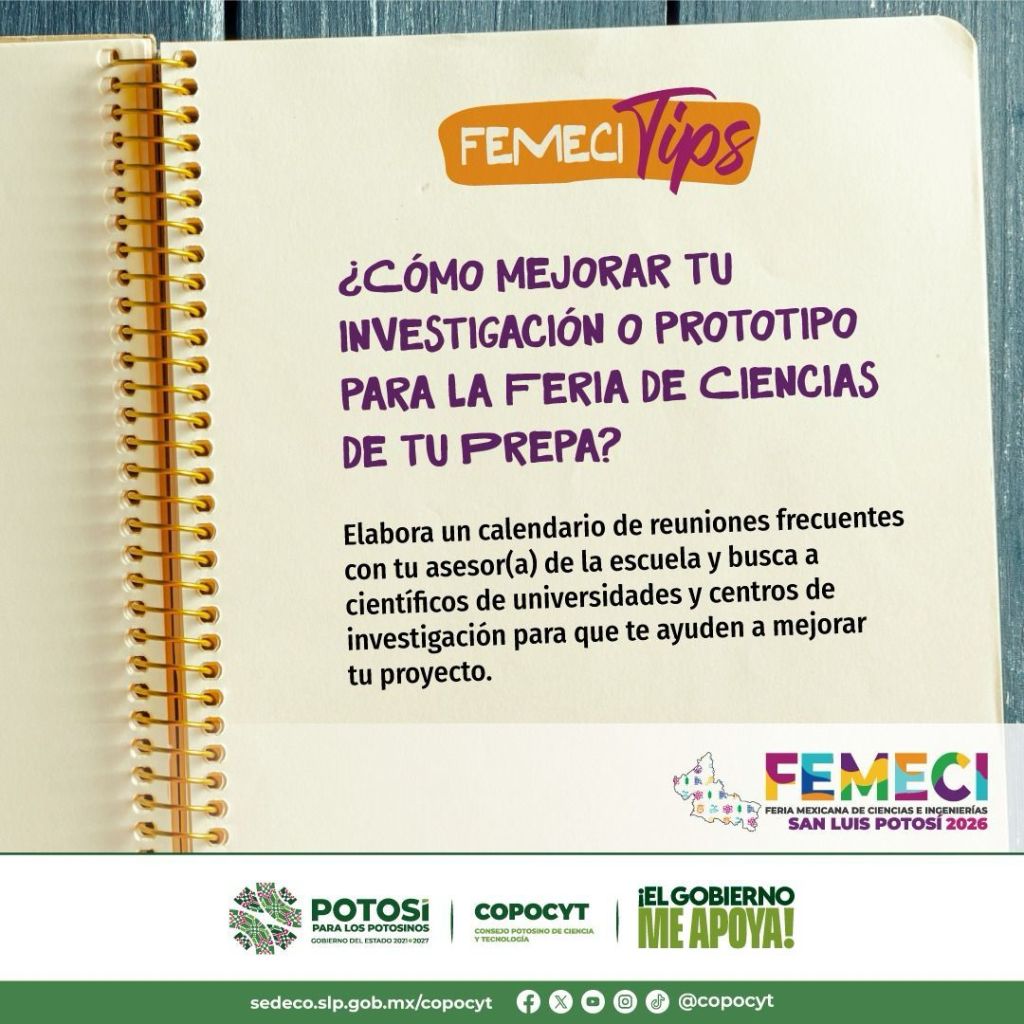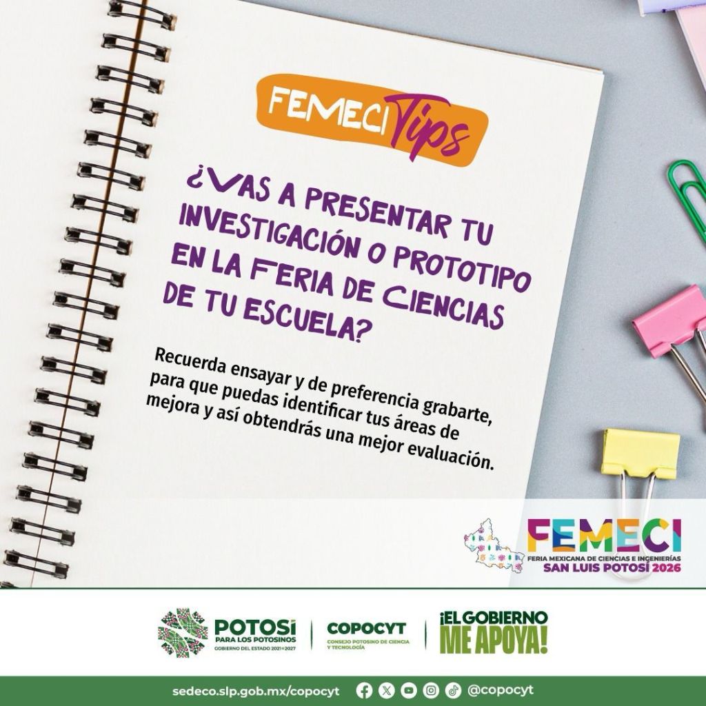 El Consejo Potosino de Ciencia y Tecnología (Copocyt), promueve a través de redes sociales la campaña “Femeci Tips”, la cual busca fortalecer los proyectos de investigación y prototipos desarrollados por estudiantes de nivel medio superior y superior.