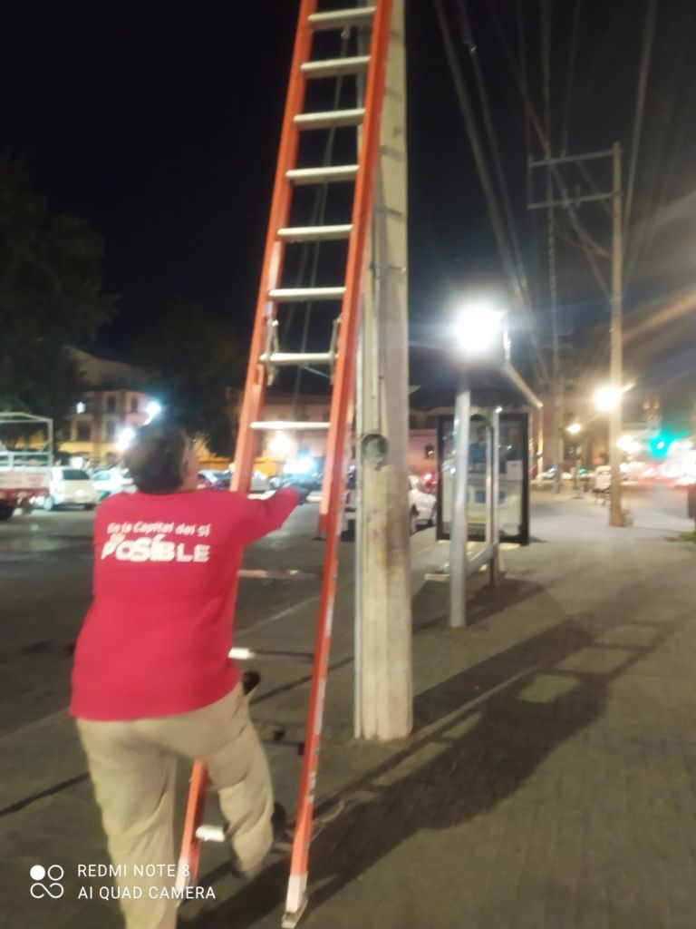 Como parte de las acciones permanentes para mantener en óptimas condiciones la iluminación del Centro Histórico de la Capital, cuadrillas de trabajadores municipales detectaron y corrigieron fallas que dejaron temporalmente a oscuras la Alameda Juan Sarabia por daños provocados intencionalmente.