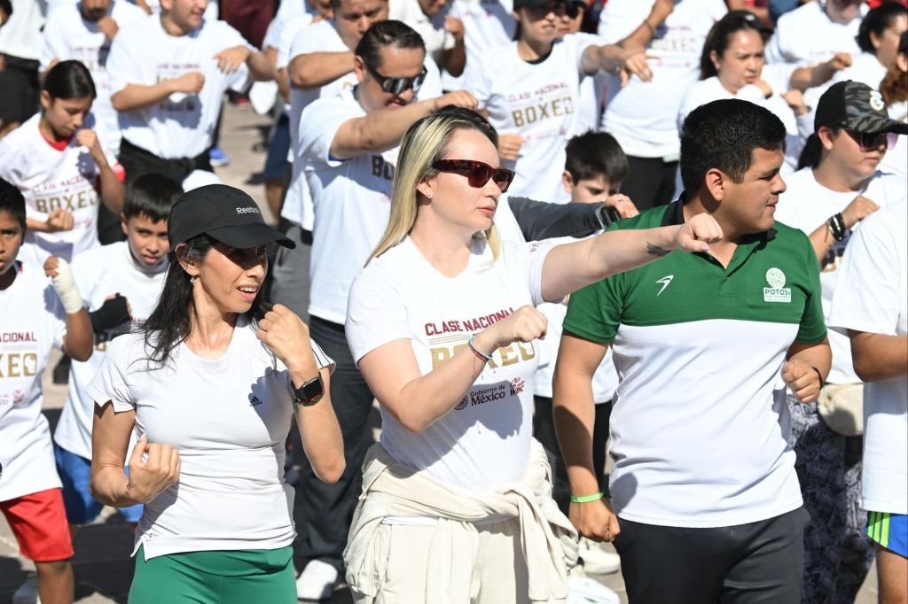 En el marco de la celebración del Día Internacional del Deporte para el Desarrollo y la Paz, el Gobierno de Ricardo Gallardo Cardona, las y los potosinos se sumaron a la Clase Nacional de Boxeo “Por la Paz y Contra las Adicciones”, con una actividad que convocó a un nutrido grupo de personas congregadas en la plaza de Los Fundadores, clase dirigida por la primera mujer potosina en participar en Juegos Olímpicos Fátima Herrera, quien estuvo presente en Paris 2024.