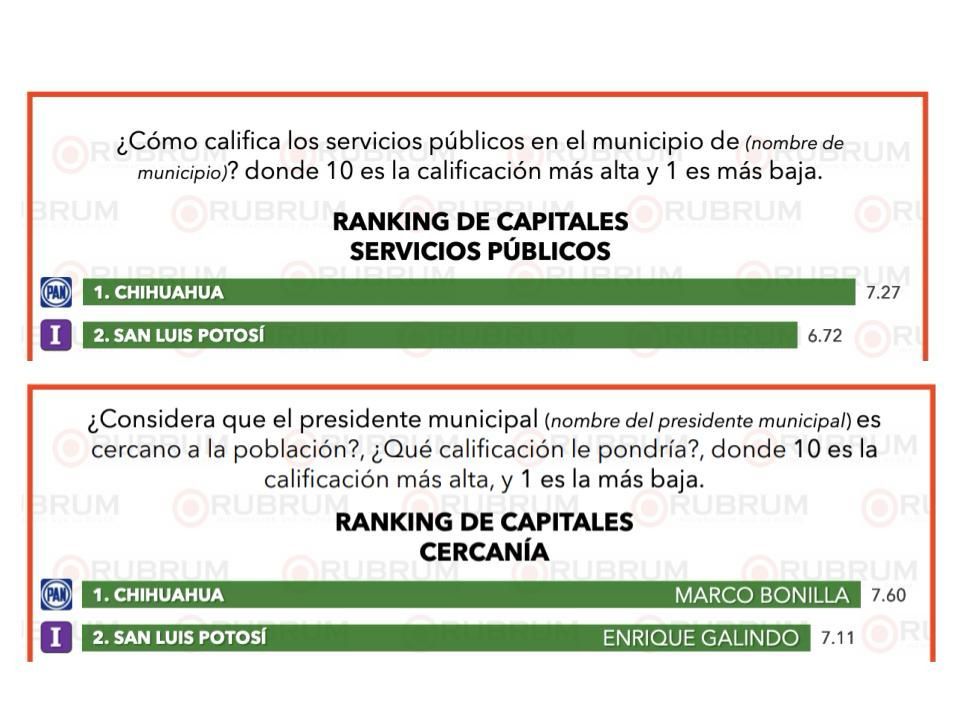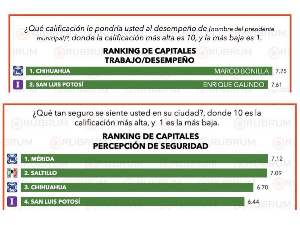 – En la evaluación ciudadana del mes de abril de la encuestadora Rubrum, el Alcalde de la Capital potosina se ubicaron en segundo lugar en Trabajo y Desempeño; Calidad de los Servicios Públicos y Aceptación de la población; mientras que en percepción de seguridad la ciudad se ubicó en cuarto lugar nacional.