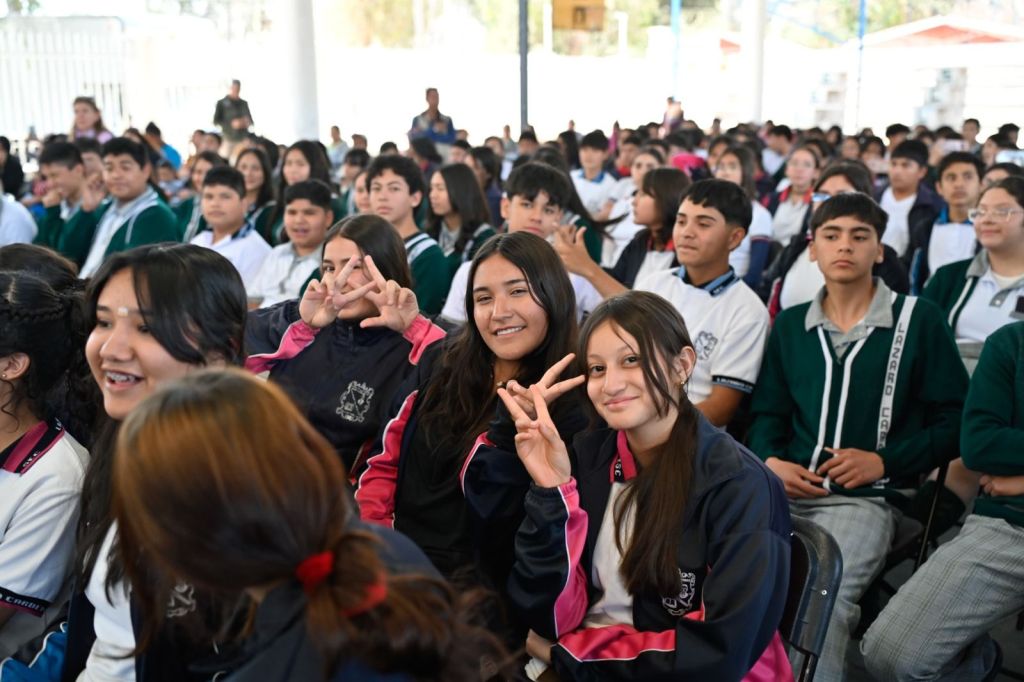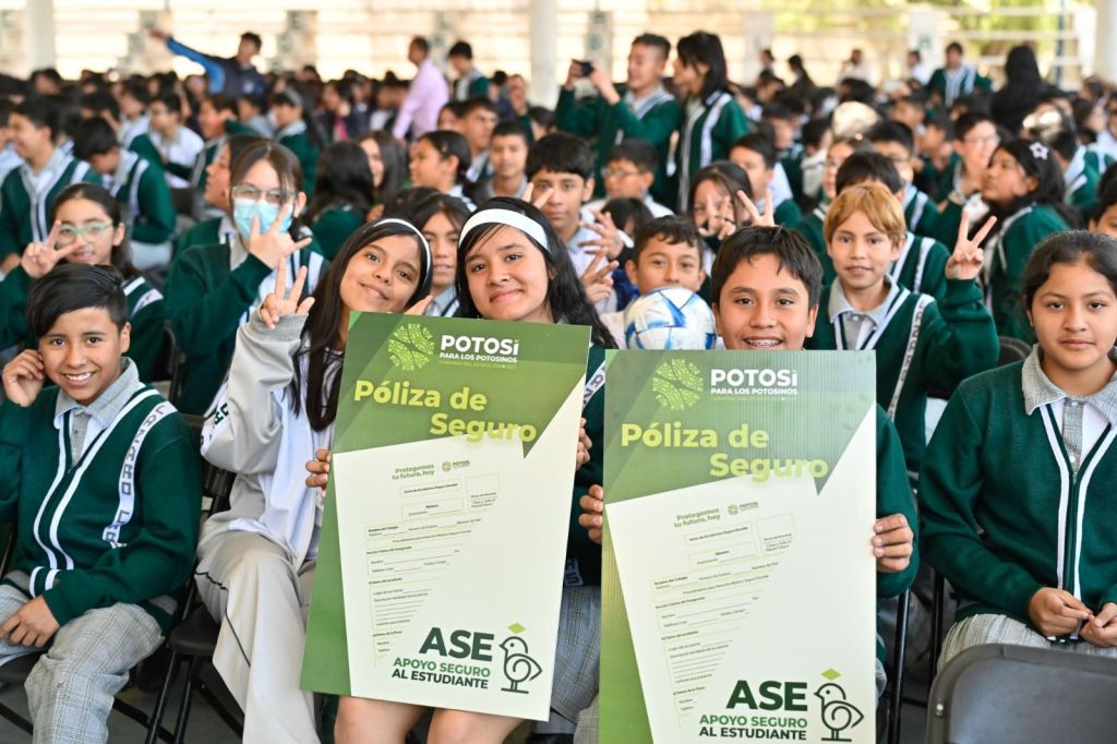 Posteriormente, entre la alegría de alumnas y alumnos de la secundaria “Lázaro Cárdenas”, el Gobernador entregó pólizas de Apoyo Seguro al Estudiante, garantizando que los estudiantes estén protegidos ante cualquier accidente en las escuelas.