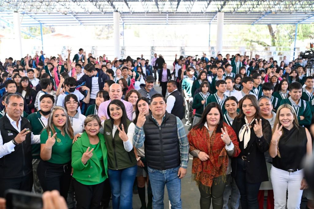 Además, entregó paquetes del programa Seguridad Alimentaria y pólizas del Apoyo Seguro al Estudiante en la escuela secundaria Lázaro Cárdenas del Río.