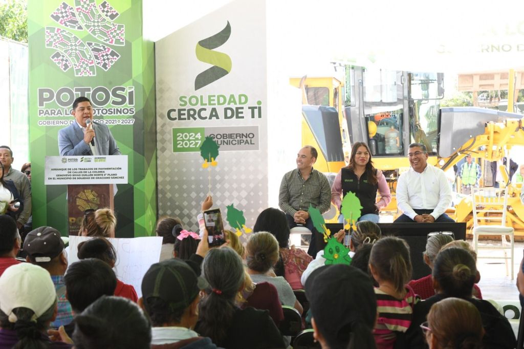 Afirmó que su Gobierno, junto al Ayuntamiento de Soledad, se ha planteado urbanizar todas las colonias y comunidades y se está cumpliendo, “la muestra es que hoy estamos aquí, arrancando esta pavimentación y la mejora de los servicios, con ello, ahora, ninguna calle de la Rivas Guillén falta de rehabilitación”.