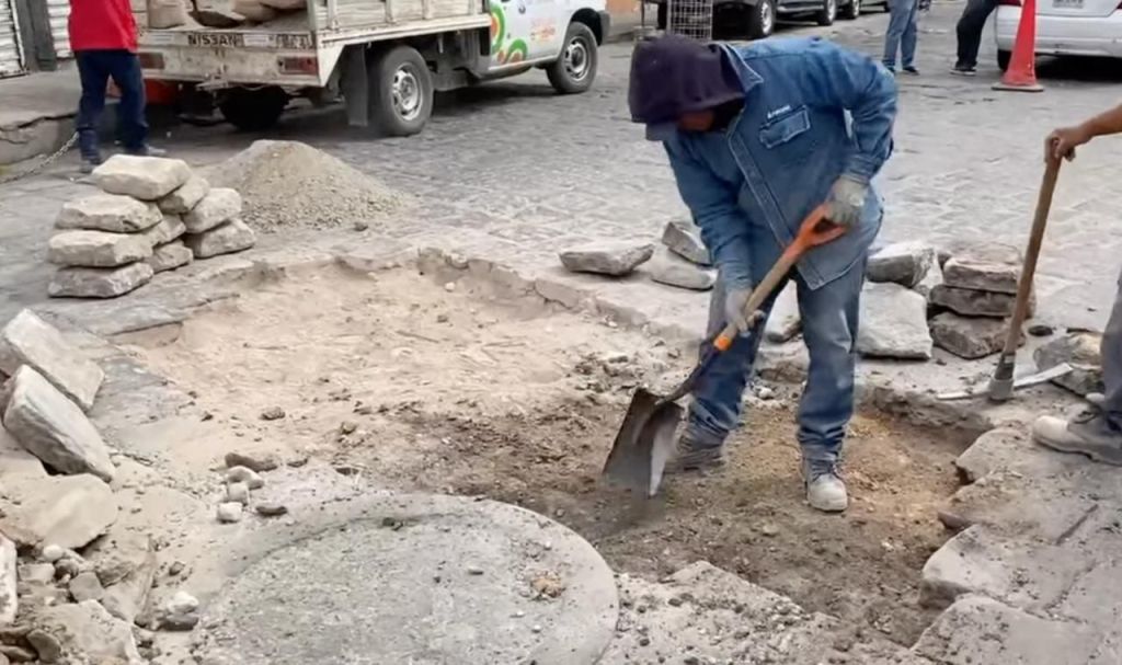 Los trabajos iniciaron este miércoles y consisten en la reposición de 40 piezas de adoquín, así como en el emboquillado con mezcla de cemento para estabilizar la superficie y asegurar su durabilidad. Debido a estas labores, fue necesario bloquear temporalmente la circulación vehicular en la zona.