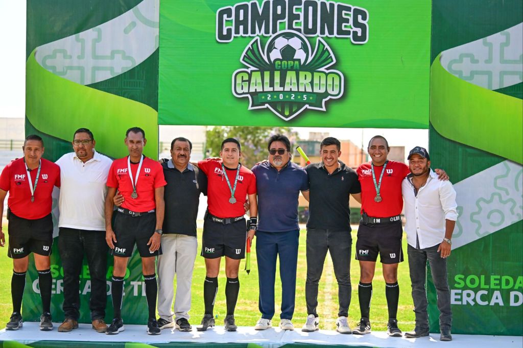 La fiesta deportiva se hizo presente en Soledad de Graciano Sánchez, y con un gran impulso del Alcalde, Juan Manuel Navarro Muñiz, al deporte entre las familias, se llevó a cabo la final de la Copa Gallardo 2025, coronandose como campeón el equipo Warriors-Ahualulco-Pagasa, con un contundente marcador de 4 goles por 0, ante Rancho Nuevo; todo el torneo se vivió emocionante con la presencia de familias enteras que fueron parte de este gran evento, en el marco de la Feria Nacional de la Enchilada (FENAE) 2025.