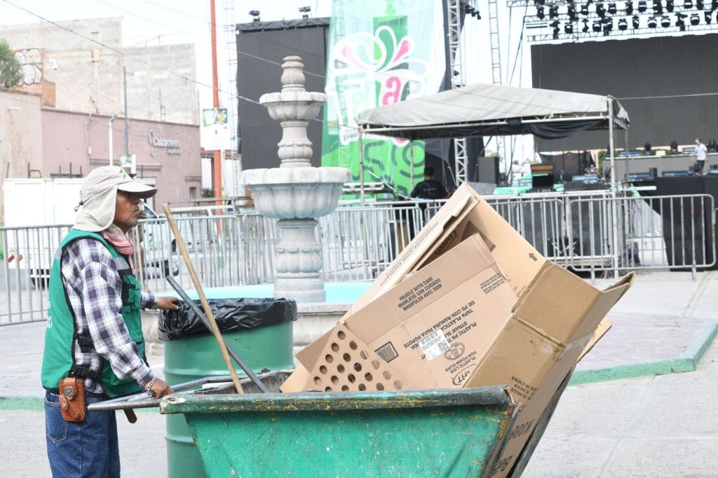 La Dirección de Servicios Municipales reforzó la infraestructura de limpieza mediante la instalación de 20 nuevos contenedores, lo que permite una adecuada disposición de residuos durante los días más intensos de la Feria, y respondiendo al compromiso del Gobierno Municipal por fomentar una cultura de limpieza y orden en eventos masivos.