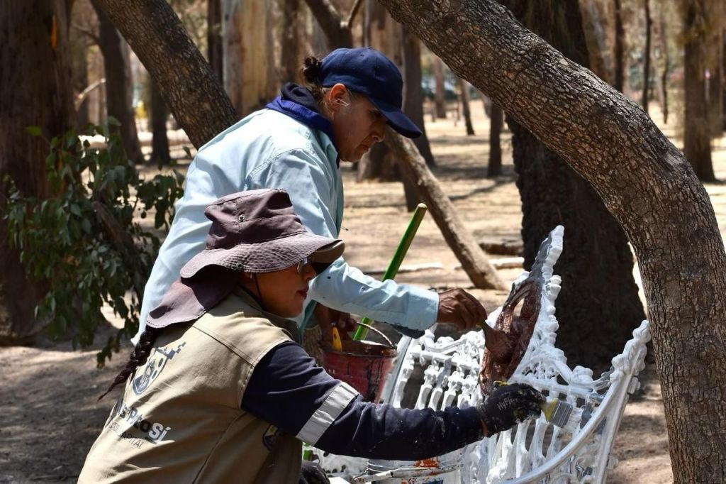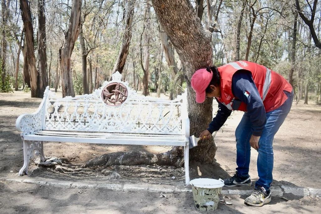 Las acciones incluyen la pintura de bancas y el riego de las áreas naturales, utilizando agua no potable como una medida responsable para el uso eficiente de los recursos. Estos trabajos se llevan a cabo en conjunto por las coordinaciones de Imagen Urbana y de Parques y Jardines.