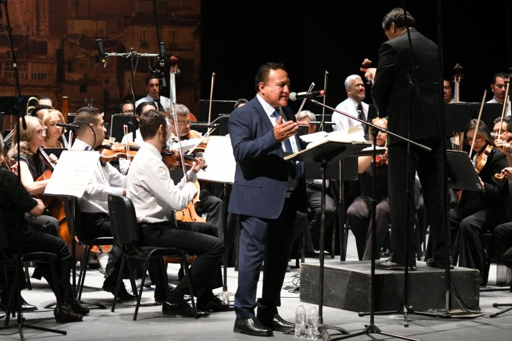 El concierto gratuito, a cargo de la Orquesta Sinfónica de San Luis Potosí bajo la batuta director huésped Julio de Santiago, contó además con la participación de la soprano Emma Calo y el narrador Osvaldo Padilla, que, con cada una de sus participaciones cautivaron al público que abarrotó el Teatro de La Paz.