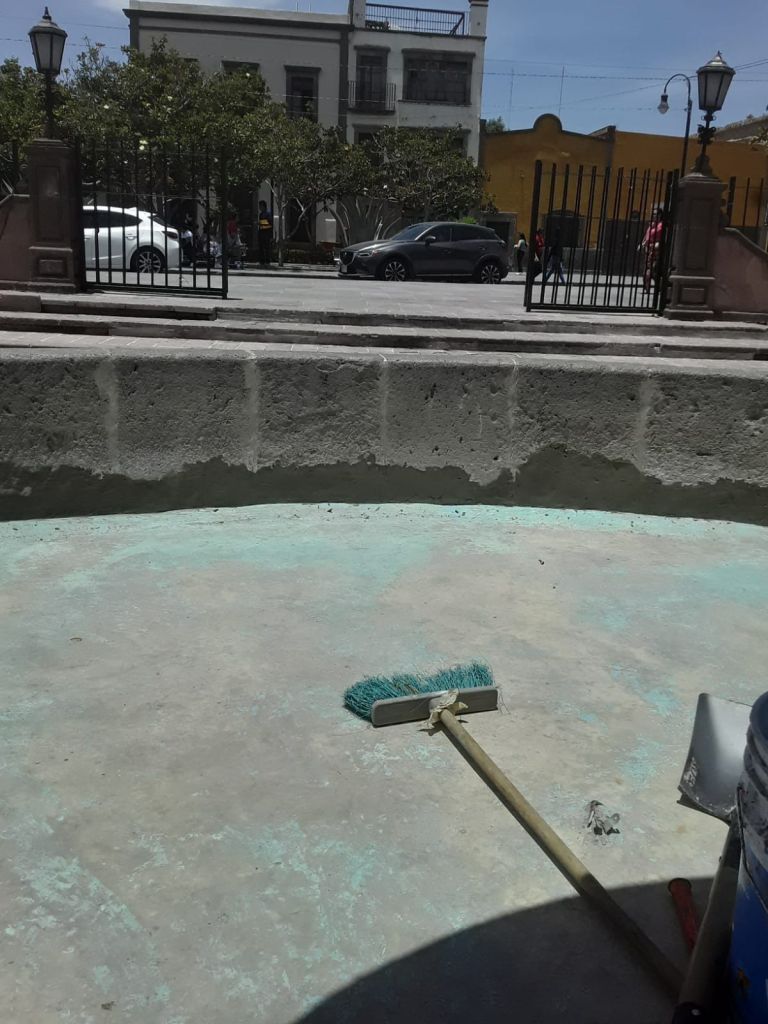 Como parte de las acciones permanentes para mantener en las mejores condiciones posible el primer cuadro de la ciudad, personal del Gobierno de la Capital trabaja en la reparación de la tradicional fuente de la Plaza de Aranzazú, para ponerla nuevamente en funcionamiento.
