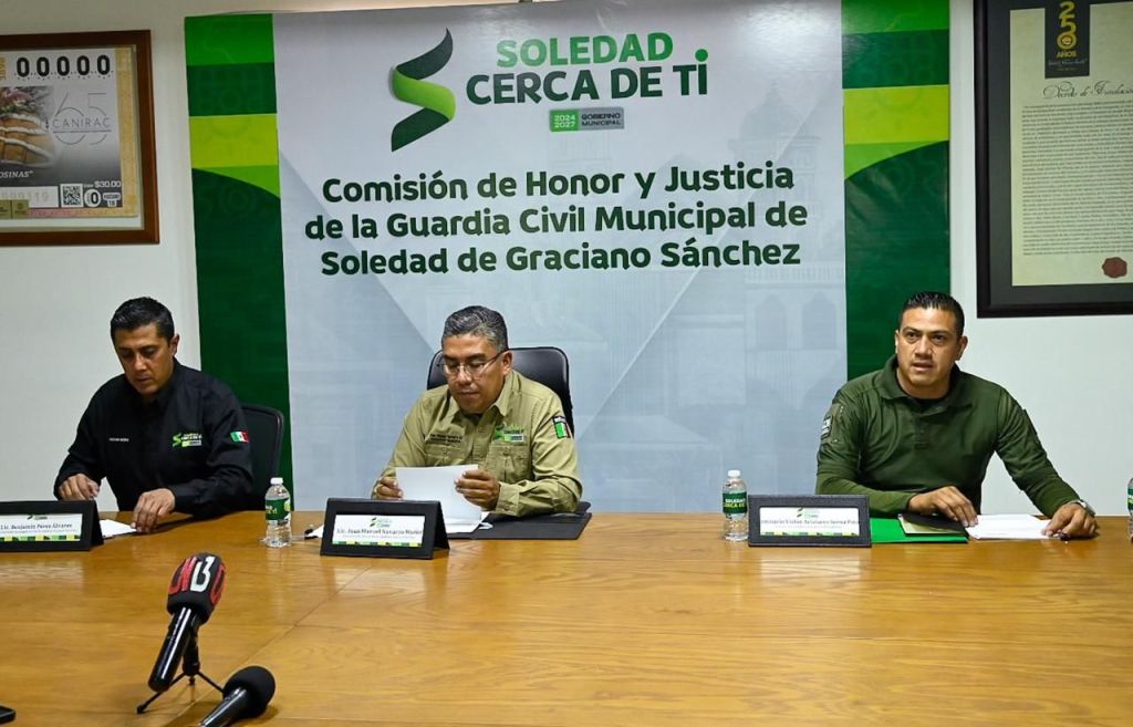 Con la finalidad de fortalecer la operatividad y generar herramientas que vigilen el correcto actuar de las y los agentes de la Guardia Civil Municipal, en favor de toda la población; este martes, el Alcalde de Soledad de Graciano Sánchez, Juan Manuel Navarro Muñiz instaló la Comisión de Honor y Justicia y presentó a sus integrantes, momento en que reconoció la labor policial y adelantó mejoras salariales, más profesionalización e incentivos para las y los elementos.