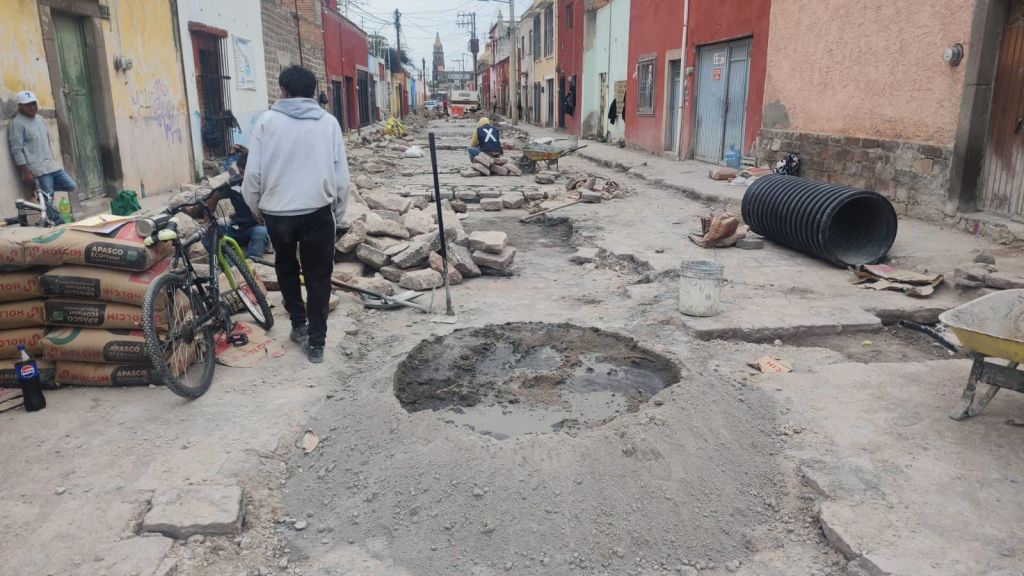 En un primer tramo, entre las calles Vázquez y José María Flores, se atendió un hundimiento de adoquines, reportado el 10 de junio, con una intervención profunda de la red sanitaria e hidráulica. Se sustituyeron 64 metros lineales de tubo PEAD corrugado de 24 pulgadas de diámetro, a una profundidad de 2.90 metros, con conexión a pozos de visita y 20 descargas domiciliarias nuevas. Además, se reemplazó la red de agua potable con tubería PVC de 3 pulgadas, conectando otras 20 tomas domiciliarias, junto con la instalación de dos cajas de válvulas para control.