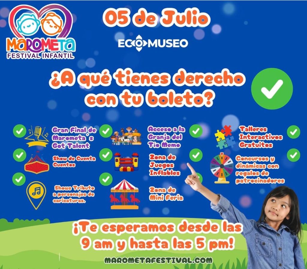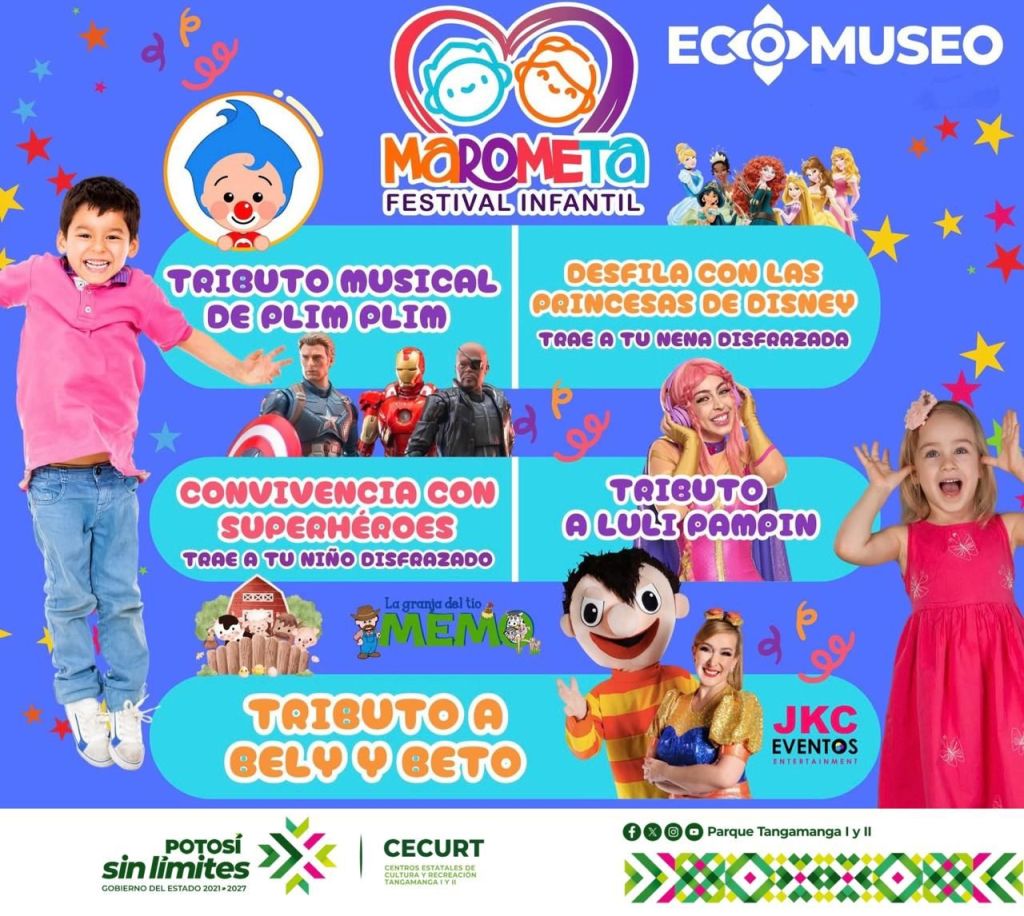 El sábado 5 de julio, de 9:00 a 17:00 horas el Ecomuseo recibirá a cientos de familias potosinas que disfrutarán de Marometa, un festival infantil que ofrecerá un ambiente lleno de alegría con shows en vivo, granjita interactiva, talleres, inflables, juegos, pinta caritas, snacks y muchas sorpresas, para que todas las familias vivan un día inolvidable en uno de los pulmones verdes más importantes de la ciudad.