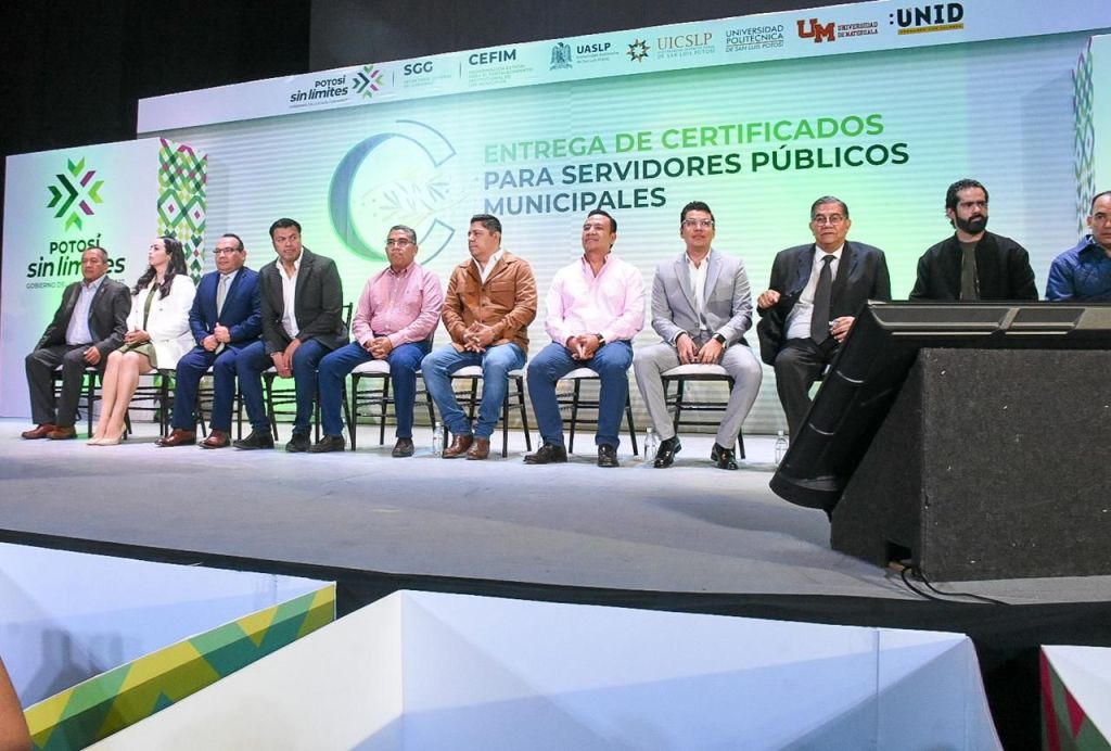 En una ceremonia liderada por el Gobernador del Estado, Ricardo Gallardo Cardona, el Presidente municipal de Soledad de Graciano Sánchez, Juan Manuel Navarro Muñiz recibió el reconocimiento por parte de la Coordinación Estatal para el Fortalecimiento Institucional de los Municipios (CEFIM), que avala la certificación de funcionariado de áreas claves del Ayuntamiento, en temas estratégicos para promueven un servicio público cercano, resolutivo y de inmediatez a la población.